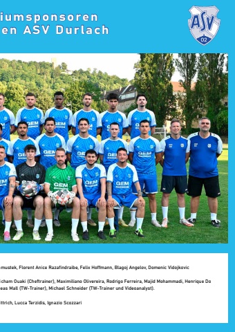 iumsponsoren en ASV Durlachamustek, Florent Anice Razafindraibe, Felix Hoffmann, Blagoj Angelov, Domenic Vidojkovicicham Ouaki (Cheftrainer), Maximiliano Olivereira, Rodrigo Ferreira, Majid Mohammadi, Henrique Do reas Mall (TW-Trainer), Michael Schneider (TW-Trainer und Videoanalyst).ittrich, Lucca Terzidis, Ignazio Scozzari